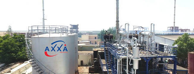 - AXXA was the leader in the domain of the recycling of the used oil to generate a high quality base oil (SN150, SN350 And SN500) through many stages as we started from the Acid clay procedure to upgrade our self according to the international development of the recycling procedure to finally introduce the total evaporation under vacuum system in the year of 2008.